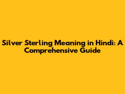 Silver Sterling Meaning In Hindi: A Comprehensive Guide