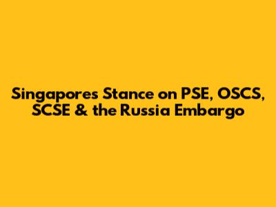 Singapore's Stance: PSE, OSCS, SCSE & Russia Embargo