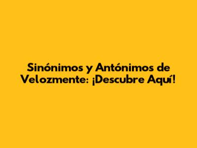 Sinónimos Y Antónimos De Velozmente: ¡Descubre Aquí!