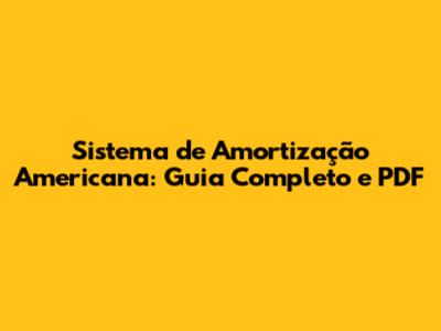 Sistema De Amortização Americana: Guia Completo E PDF