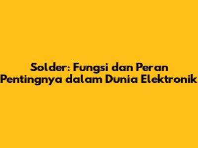 Solder: Fungsi Dan Peran Pentingnya