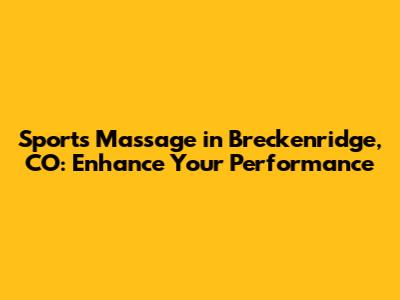 In conclusion, sports massage in Breckenridge, CO, is a valuable tool for athletes and active individuals looking to enhance their performance, prevent injuries, and improve overall well-being. By understanding the benefits of sports massage and finding the right therapist, you can incorporate this therapy into your routine and achieve your athletic goals. Whether you're a seasoned pro or just starting out, sports massage can help you stay healthy, perform at your best, and enjoy all that Breckenridge has to offer. So, take the time to invest in your body and experience the transformative power of sports massage! Remember to communicate with your therapist, follow their recommendations, and be consistent with your self-care practices. With the right approach, you can unlock your full athletic potential and enjoy a long and healthy active life.