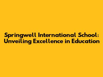 Springwell International School: A Comprehensive Guide