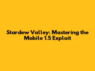 Stardew Valley: Mastering The Mobile 1.5 Exploit