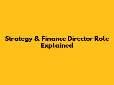 Strategy & Finance Director Role Explained