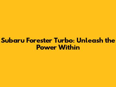 Hey guys! Thinking about diving into the world of the Subaru Forester Turbo? Or maybe you're already an owner and looking to unlock its full potential? You've come to the right place! This guide is all about the Subaru Forester Turbo, exploring its performance, potential modifications, and everything in between. We'll cover the essentials to help you understand what makes this turbocharged SUV so special and how to make the most of it.