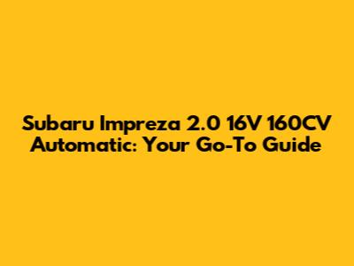 Subaru Impreza 2.0 16V Automatic: Ultimate Guide