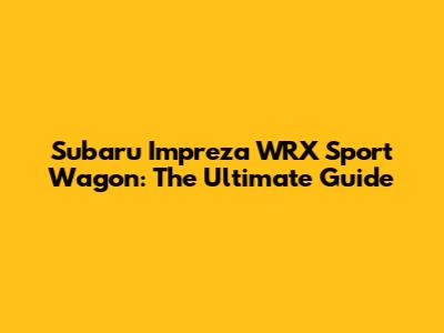 Subaru Impreza WRX Sport Wagon: The Ultimate Guide