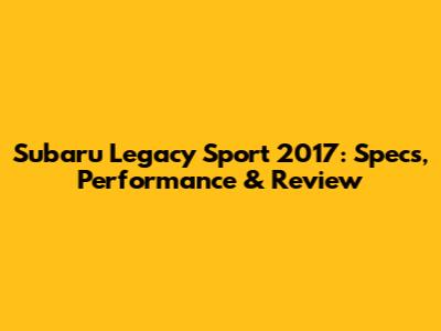 Hey guys! Let's dive into everything you need to know about the Subaru Legacy Sport 2017. If you're eyeing this car, you're probably wondering about its specs, performance, and what makes it stand out. Well, buckle up because we're about to break it all down in a way that's easy to understand and super helpful.