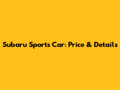 Subaru Sports Car: Price & Details
