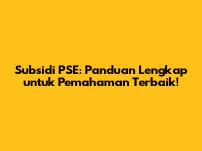 Subsidi PSE: Panduan Lengkap Untuk Pemahaman Terbaik!