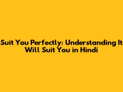 Suit You Perfectly: Understanding 'It Will Suit You' In Hindi