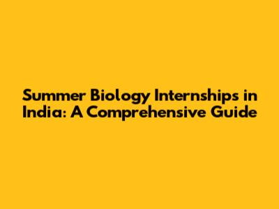Summer Biology Internships In India: A Comprehensive Guide