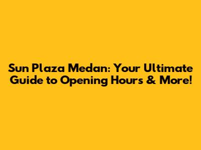 Sun Plaza Medan: Your Guide To Opening Hours & More!