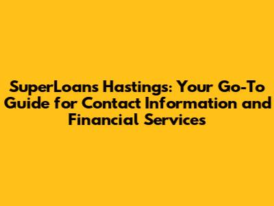 • Q: Where is SuperLoans Hastings located? A: SuperLoans Hastings's physical branch location information can be found on their website, or in local business directories.
