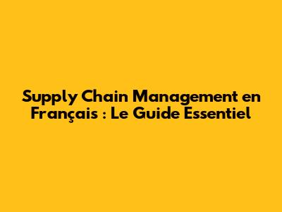 Supply Chain Management En Français : Le Guide Essentiel