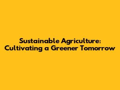 Sustainable Agriculture: Practices For A Better Future