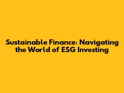 Sustainable Finance: A Guide To ESG Investing