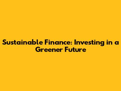 Sustainable Finance: Investing In A Greener Future