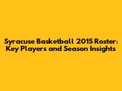 Syracuse Basketball 2015 Roster: Key Players And Season Insights