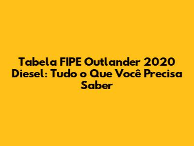 Entendendo a Tabela FIPE do Outlander 2020 Diesel