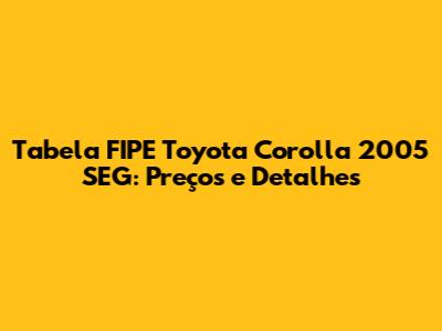 Tabela FIPE Toyota Corolla 2005 SEG: Preços E Detalhes