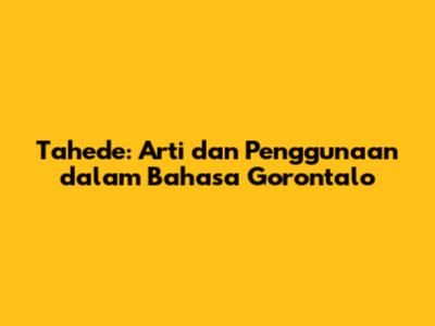 Tahede: Arti Dan Penggunaan Dalam Bahasa Gorontalo
