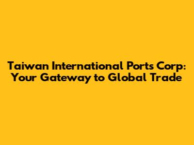 Taiwan International Ports Corp: Your Gateway To Global Trade