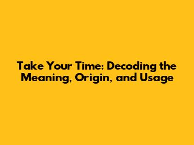 Take Your Time: Meaning, Origin, And Usage