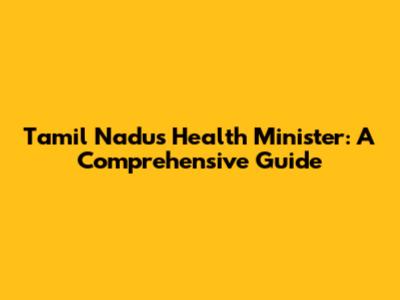 Tamil Nadu's Health Minister: A Comprehensive Guide