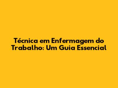 Técnica Em Enfermagem Do Trabalho: Guia Essencial