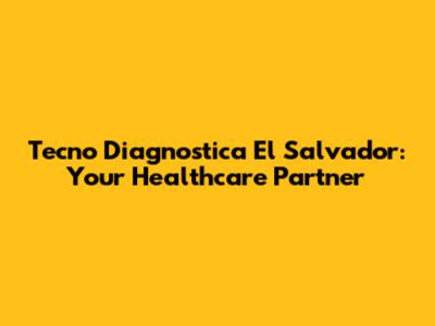 Hey guys! Let's dive into the world of Tecno Diagnostica El Salvador. If you're looking for a reliable healthcare partner in El Salvador, you've landed in the right spot. We'll explore what makes Tecno Diagnostica tick, their services, and why they might be the perfect fit for your needs. So, buckle up, and let's get started!