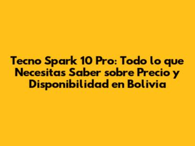 ¡Perfecto! Ya sabemos que el precio del Tecno Spark 10 Pro es competitivo, pero ¿dónde pueden conseguirlo en Bolivia? Aquí les dejo algunas opciones: