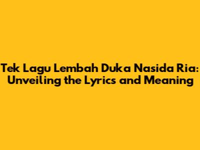 Hey guys! Ever found yourself humming a tune and wondering about its deeper meaning? Well, let's dive into the world of "Lembah Duka" by Nasida Ria. This song isn't just a catchy melody; it's a poignant piece of art that speaks volumes. This article will break down the tek lagu lembah duka Nasida Ria, looking closely at the lyrics, the context, and why it continues to resonate with so many people. We'll explore the emotional landscape the song paints and uncover the messages Nasida Ria skillfully conveys. So, grab your headphones, get comfy, and let's unravel the beauty of "Lembah Duka" together!