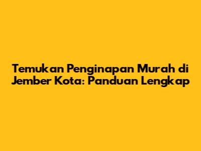 Penginapan murah di Jember kota adalah hal yang dicari banyak orang, terutama bagi mereka yang memiliki anggaran terbatas. Jember, sebuah kota yang terletak di Jawa Timur, menawarkan berbagai pilihan akomodasi yang sesuai dengan berbagai anggaran. Dalam panduan ini, kita akan menjelajahi berbagai opsi penginapan murah di Jember, mulai dari hotel budget hingga losmen dan guest house yang ramah di kantong. Kami akan memberikan tips memilih penginapan yang tepat, mempertimbangkan lokasi strategis, fasilitas yang ditawarkan, dan tentu saja, harga yang terjangkau. Jadi, buat kalian yang sedang merencanakan perjalanan ke Jember, simak terus panduan ini untuk menemukan penginapan yang sempurna tanpa harus menguras dompet!