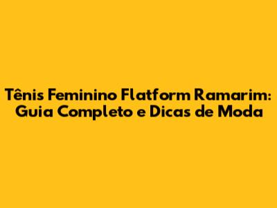 Tênis Feminino Flatform Ramarim: Guia Completo E Dicas De Moda