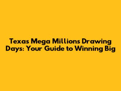 Hey guys! Ever dream of hitting the jackpot? The Texas Mega Millions could be your ticket to a life-changing win. But before you start picking your lucky numbers, it's crucial to know when those drawings happen. Knowing the Texas Mega Millions drawing days is the first step toward potentially becoming a multi-millionaire. So, let's dive into everything you need to know about the drawing schedule and how to play. Understanding when the drawings take place is essential because it allows you to plan when to purchase your tickets and anticipate the results. Timing is everything, especially when it comes to games of chance! To maximize your chances, stay informed about any schedule changes or special drawing events. Always double-check the official Texas Lottery website or authorized retailers for the most up-to-date information. This attention to detail ensures you never miss an opportunity to play and potentially win. Let's be real, who wants to miss their shot at millions? By keeping informed and planning ahead, you're setting yourself up for success and increasing your chances of turning your dreams into reality. Stick with us, and you'll be a Mega Millions pro in no time!