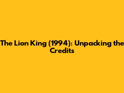 The Lion King (1994): Unpacking The Credits