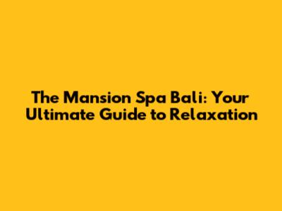 The Mansion Spa Bali: A Luxurious Retreat