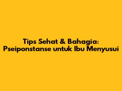 Tips Sehat & Bahagia: Pseiponstanse Untuk Ibu Menyusui