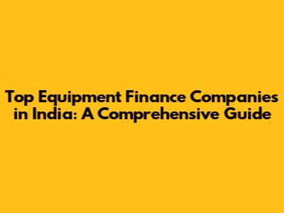 Top Equipment Finance Companies In India: A Comprehensive Guide