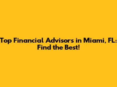 Top Financial Advisors In Miami, FL: Find The Best!
