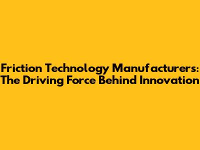 The Role of Friction Technology Manufacturers