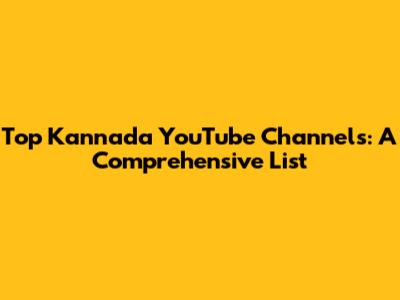 Top Kannada YouTube Channels: A Comprehensive List
