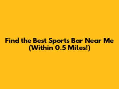 Finding the best sports bar near you within 0.5 miles doesn't have to be a chore. With the right tools and a little bit of research, you can find the perfect spot to cheer on your team. So get out there, explore your neighborhood, and discover your new favorite sports bar! Cheers to great games and even better company!