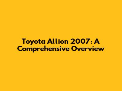 Alright guys, before we jump into the nitty-gritty, let's set the stage. The Toyota Allion is a compact sedan produced by Toyota, primarily for the Japanese market. The 2007 model, falling within the first generation (2001-2007), offers a blend of practicality, comfort, and a touch of style. It's often compared to cars like the Toyota Premio, which shares many similarities. This generation of the Allion was known for its sleek design and efficient performance, making it a favorite for daily commutes and family use. The 2007 model year specifically saw some refinements and updates that further cemented its place in the market. Understanding the background helps us appreciate the car's design choices and target audience. For instance, the emphasis on fuel efficiency was a significant factor, reflecting the rising fuel costs and environmental awareness of the time. The interior was also designed with comfort in mind, with features aimed at enhancing the driving experience for both the driver and passengers. These details showcase Toyota's attention to detail and its commitment to meeting the needs of its consumers. Overall, the 2007 Allion represents a solid choice for those seeking a reliable and practical sedan.