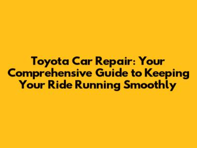 Toyota Car Repair: Expert Tips & Troubleshooting