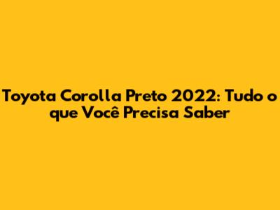 Toyota Corolla Preto 2022: Tudo O Que Você Precisa Saber