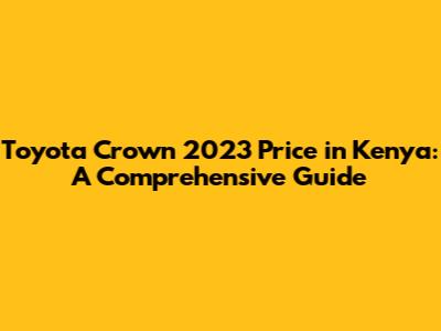Toyota Crown 2023 Price In Kenya: A Comprehensive Guide