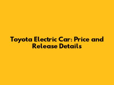 Toyota Electric Car: Price And Release Details